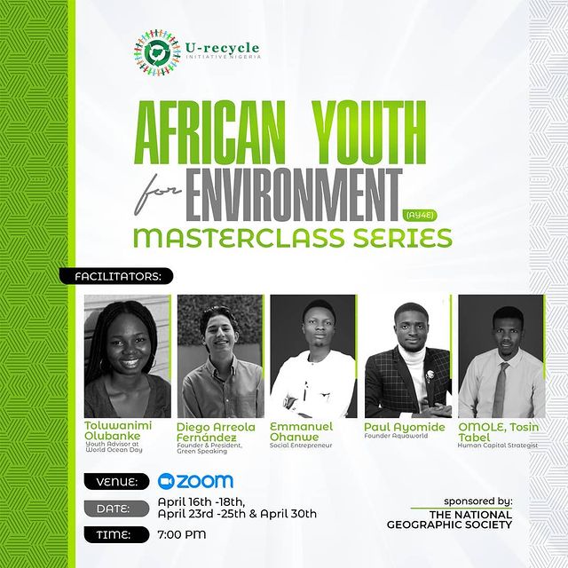 In 2021, U-recycle Initiative Africa embarked on an audacious project- The African Youth For Environment (AY4E) fellowship- with the support of the National Geographic Society. This was a first-of-its-kind fellowship in Nigeria, focused on influencing behavioral change to tackle plastic pollution and empower young Nigerians to pioneer solutions in addressing environmental issues providing them with knowledge skills and expertise to develop tide-turning projects and grassroots solutions aimed at mitigating plastic pollution, combating climate change, and advancing ocean conservation.