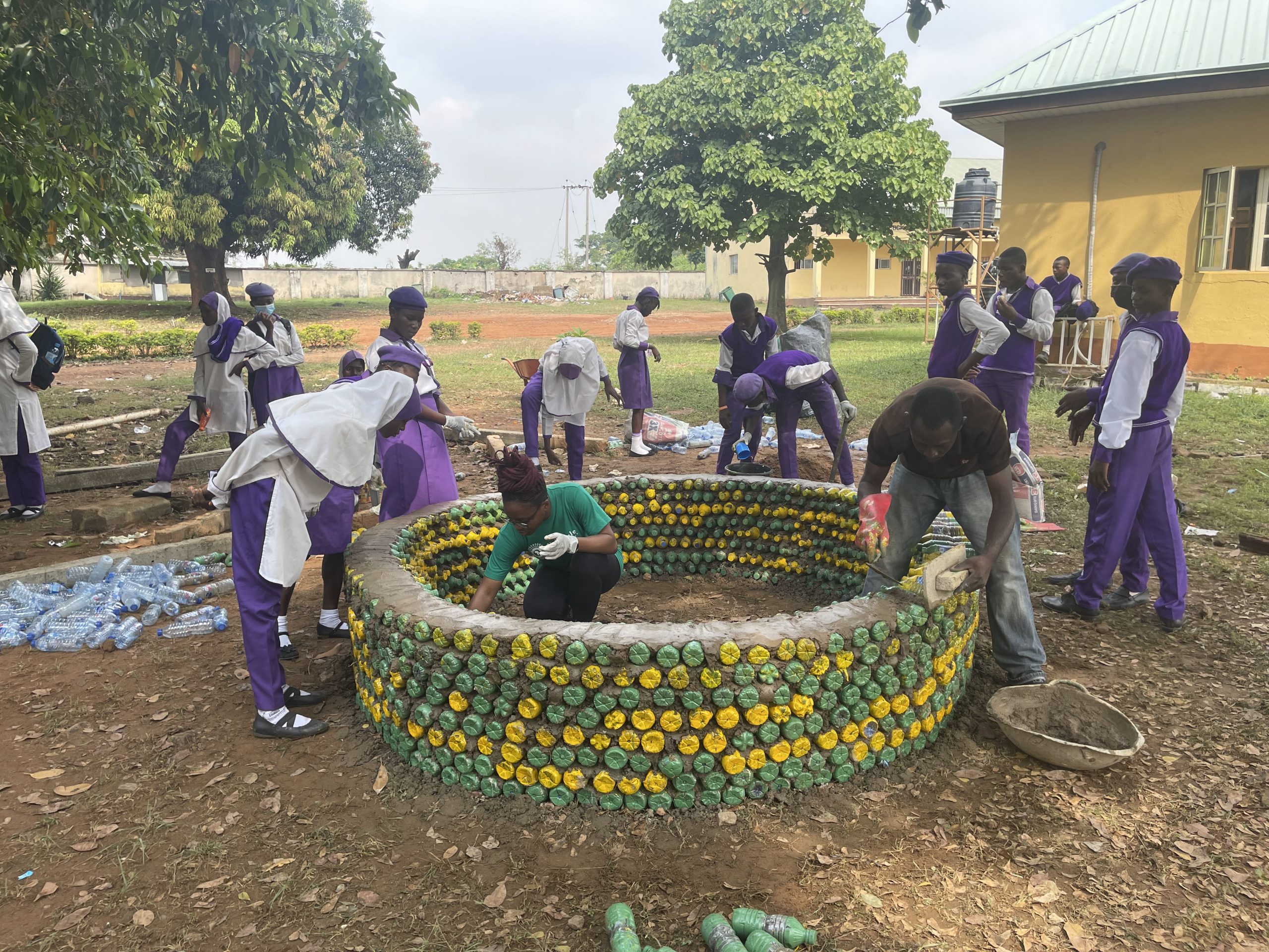 This project was the last and final phase of the African Youth For Environment (AY4E) Fellowship in 2021. One major goal of this Upcycled Monument project was to educate students of the resourceful nature of waste. We engaged the students in a creative project by constructing upcycled monuments from over 4000 ocean-bound discarded plastic waste bottles and other recyclables. This project was focused on inspiring students to see how value can be harnessed from waste.